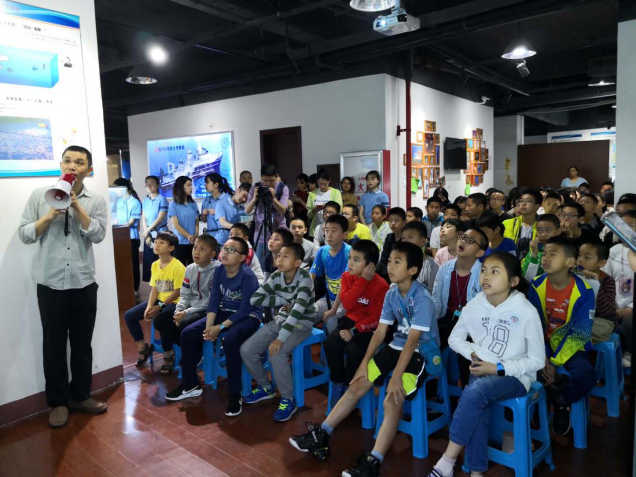 4月27日上午,来自厦门外国语学校和公开招募的66名中小学生,在厦门大学海洋科技博物馆,跟随厦门大学水声部重实验室的童峰教授,开启了一场机器人的创想之旅。