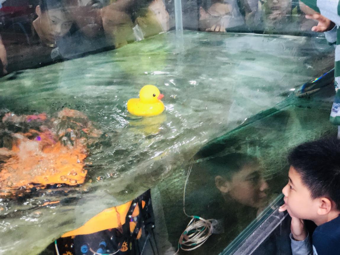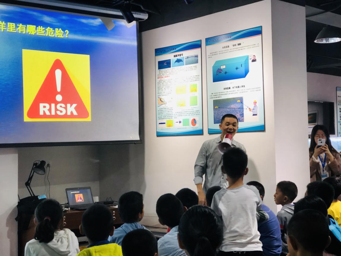 本次活动以蓝色的海洋文化为依托,自然少不了优质的海洋科技博物馆导览环节。在讲解员的带领下,同学们参观了海洋生物馆、水声通信展区、观海弄潮展区等五大展区,在丰富生动的讲解词和海洋知识竞答中,走进了神秘而又奇妙的海洋世界。大家不仅观赏到了包括中华白海豚、大砗磲、紫晶洞、硅化木、大西洋大海鲢等在内的多种珍贵标本,更收获了一箩筐的趣味海洋科学知识。