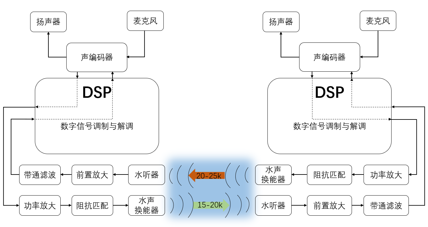 水声数字语音通信在海洋科考、水下作业、潜水娱乐和海洋科普等方面有着重要的应用前景。近日,水声部重刘胜兴副教授课题组成功研制出一种全双工水声数字语音通信系统,在浅海环境中获得很好的海上试验效果。据悉,该系统采用低速率语音压缩编解码、正交频分复用多载波通信和LDPC编码等先进技术,在多普勒频移估计和补偿、自适应信道估计、跟踪和均衡、语音增强和消噪等方面取得重要进展。该系统将水声换能器带宽分成两个不同子带,其中一个子带为上行通信,用于发送语音数据;另一个子带为下行通信,用于接收语音数据,实现实时全双工通信功能。系统硬件以DSP和声码器为核心,具有嵌入式、小型化、低功耗和易升级等优点,现已在厦门市科技馆“海洋馆”顺利推广应用。