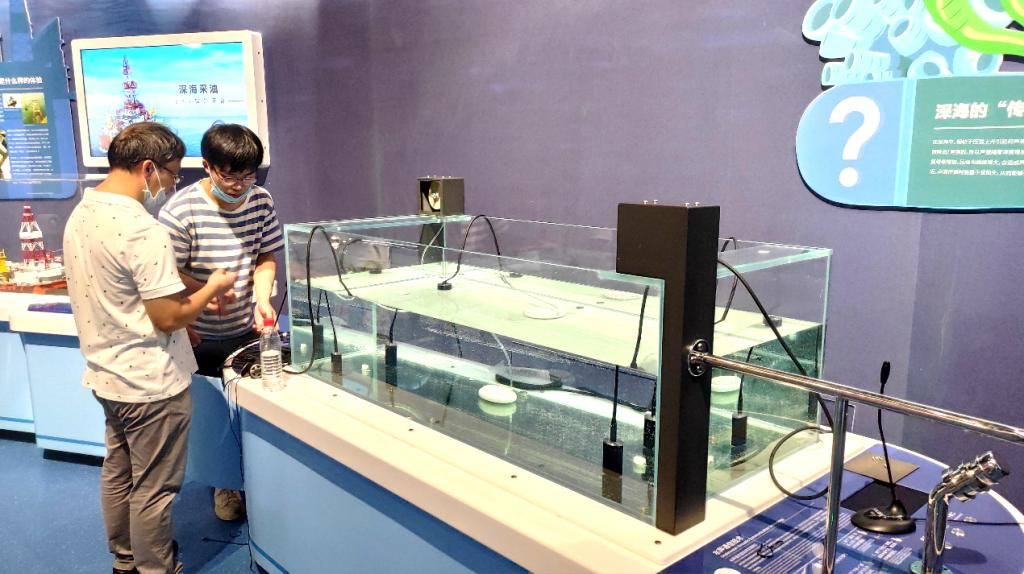 “馆研合作”是推进高校实验室科研成果科普化的重要途径之一。此次课题组与厦门科技馆合作,定位于科学普及和公众开放的应用场景,量身定制出适用于科普展示的全双工水声数字语音通信系统。通过设定气泡干扰等环节,模拟实际海洋水声信道的多变性和复杂性,探究气泡环境对通信系统的影响,增加产品展示的交互性和趣味性。课题组积极响应高校实验室参与科普工作的号召,推进全双工水声数字语音通信系统科普演示项目的落地,对提升公众科学素质,传播海洋知识,激发青少年对海洋科普的兴趣具有重要的引导作用。