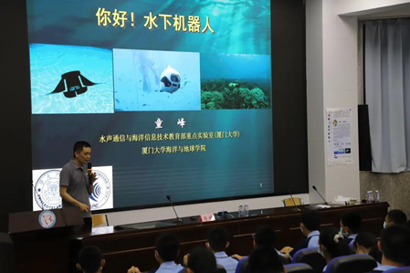 讲座的最后,他向同学们详细地介绍了厦门大学水声通信研究,并邀请同学们参与厦门大学海洋科学开放日活动,通过参观高校实验室前沿科研成果感受海洋的奥秘,并找到自己的兴趣点,未来为祖国的海洋建设贡献力量。