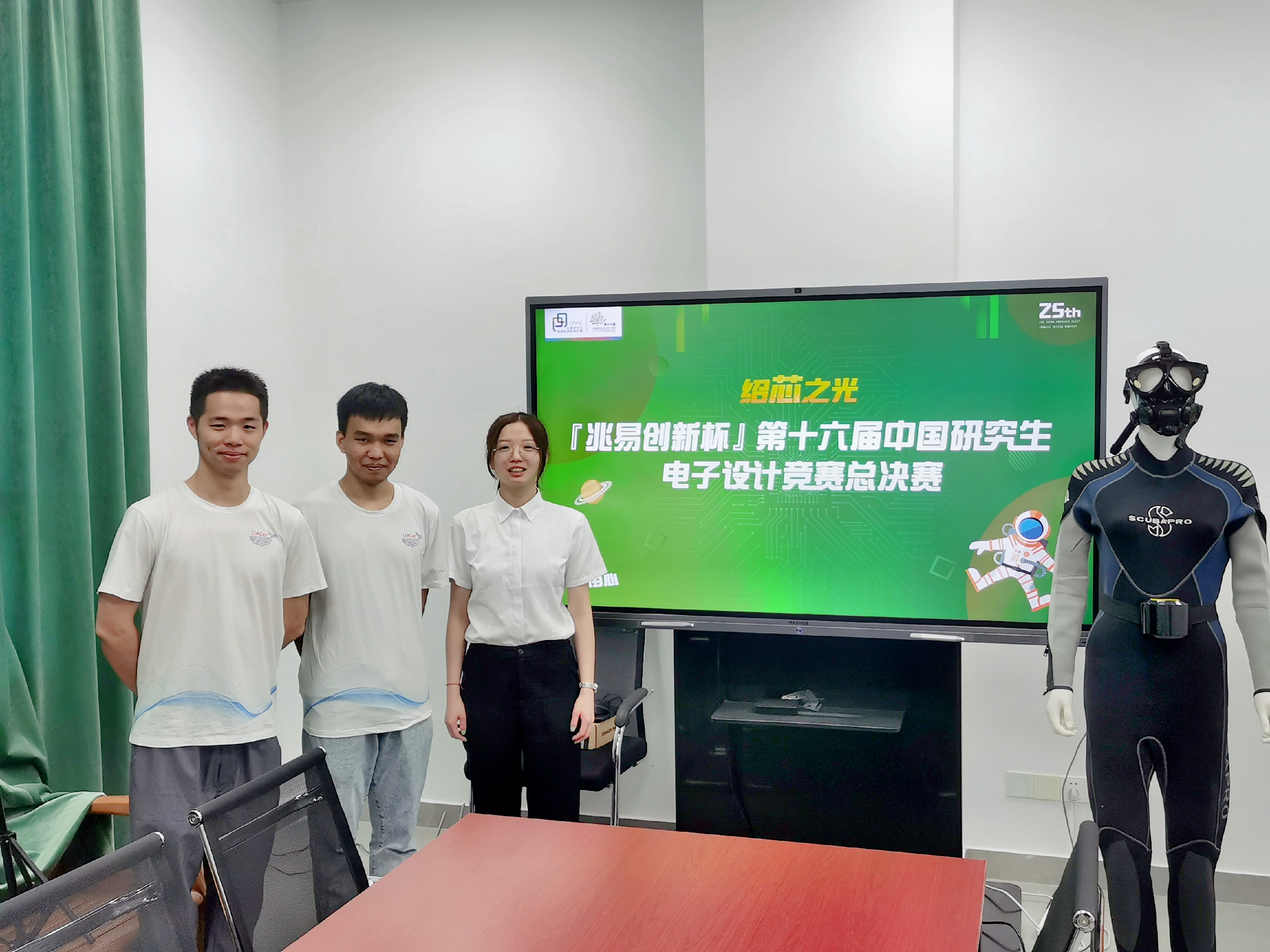 2021年8月13日,“兆易创新杯”第十六届中国研究生电子设计竞赛总决赛在线上正式开幕。来自全国150余所参赛单位427支队伍的1200余名学生带来最新电子科研成果和智能硬件创新产品参与最终的角逐。由我室研究生信息与通信工程系黄晶晶、陈鸿滨、刘洁豪组成的“蓝海聆音”队推出的参赛作品“蓝海聆音--智能潜水服”获得全国总决赛技术组二等奖(指导老师:袁飞、朱逸)。“蓝海聆音”队经过近5个月的积极备战和区域赛的激烈角逐,成功突破华东赛区的层层选拔,从613支队伍中脱颖而出,晋级全国总决赛。决赛中,队员们通力协作、分工明确,顺利地通过远程答辩和直播展示作品,得到评委们的一致认可并喜获佳绩。
