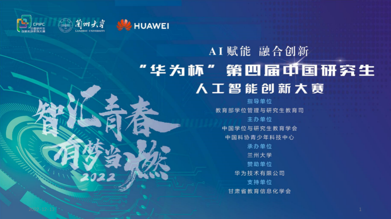 中国研究生人工智能创新大赛(以下简称“大赛”)是“中国研究生创新实践系列大赛”主题赛事之一,由教育部学位管理与研究生教育司指导、中国学位与研究生教育学会和中国科协青少年科技中心主办。大赛秘书处设于浙江大学。2022年第四届中国研究生人工智能创新大赛由兰州大学承办。大赛以“AI 赋能、创新引领”为理念,围绕人工智能创新主题,引领未来的战略性技术,激发研究生创新意识,提高研究生创新和实践能力,着力培养创新型、复合型、应用型高端人才,为人工智能健康发展提供人才支撑。第四届大赛2022年4月正式开赛,吸引了来自全国212所高校的1217支队伍,5137人报名参赛,累计提交作品931份,包括技术创新类,应用创新类,华为企业赛题等,大赛最终设置一等奖10名,二等奖20名,三等奖55名。