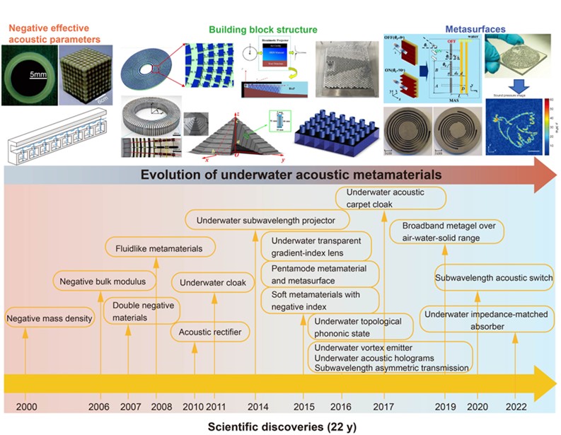 近日, National Science Review杂志在线发表了厦门大学海洋与地球学院、水声通信与海洋信息技术教育部重点实验室张宇教授及其合作者的综述论文“Underwater acoustic metamaterials”(水下声学超材料)。该论文全面回顾了近二十多年来水下声学超材料的发展历程,并为该材料在未来水下物联网、水声通信、水下无人潜器的声导航与声探测、水下声隐形、梯度式水声换能器设计以及海洋资源勘探等领域的应用提供了重要的理论指导。