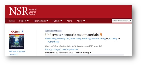 科研进展|厦门大学张宇教授团队在National Science Review发表水下声学超材料综述论文