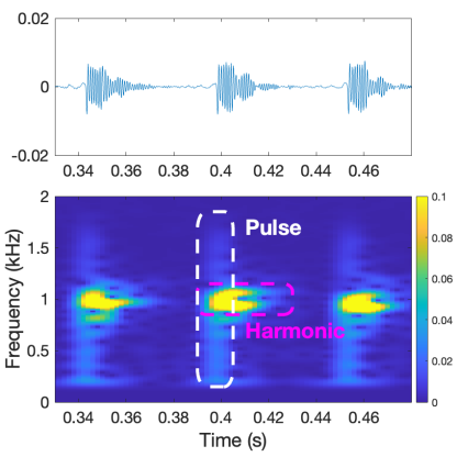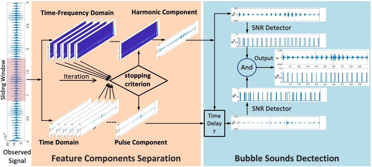 图2. 气泡声信号的两种特征成分,以及分别提取的结果