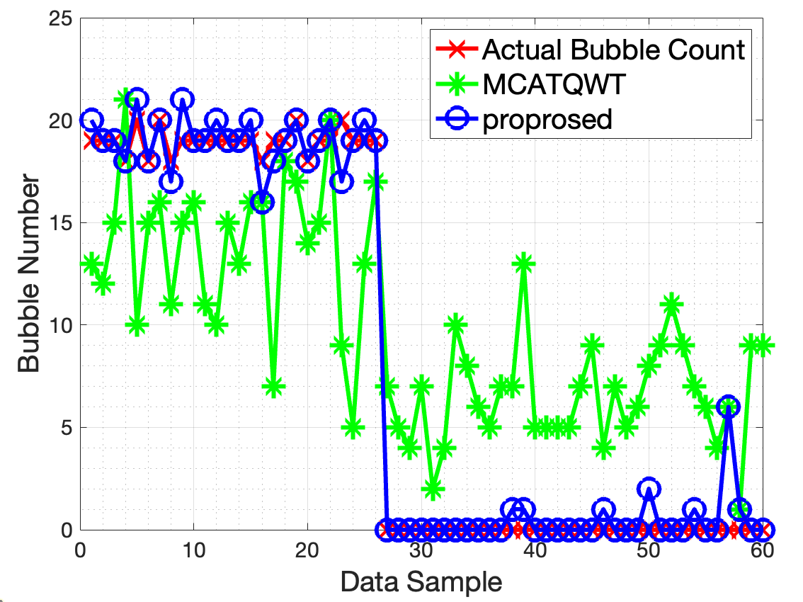 该研究实现了气泡振荡声信号的检测,并进一步在检测每个水下气体渗漏气泡的基础下判断是否有气体渗漏。气泡声信号检测是基于两种特征成分实现的,展示如图1所示,同时设计了特征成分的提取算法,效果如图2所示。基于两种特征成分的气泡声信号检测器具有目标针对性,因此也能有效对抗海洋脉冲噪声等因素的干扰,优势显著。以上述研究为基础,通过计数生成气泡数量的方式,就能非常简单地判断是否有气体渗漏情况发生,如图3所示。相关研究成果填补了此类声目标检测方法的不足,可为低流量气体渗漏点的探寻任务提供重要技术支持。