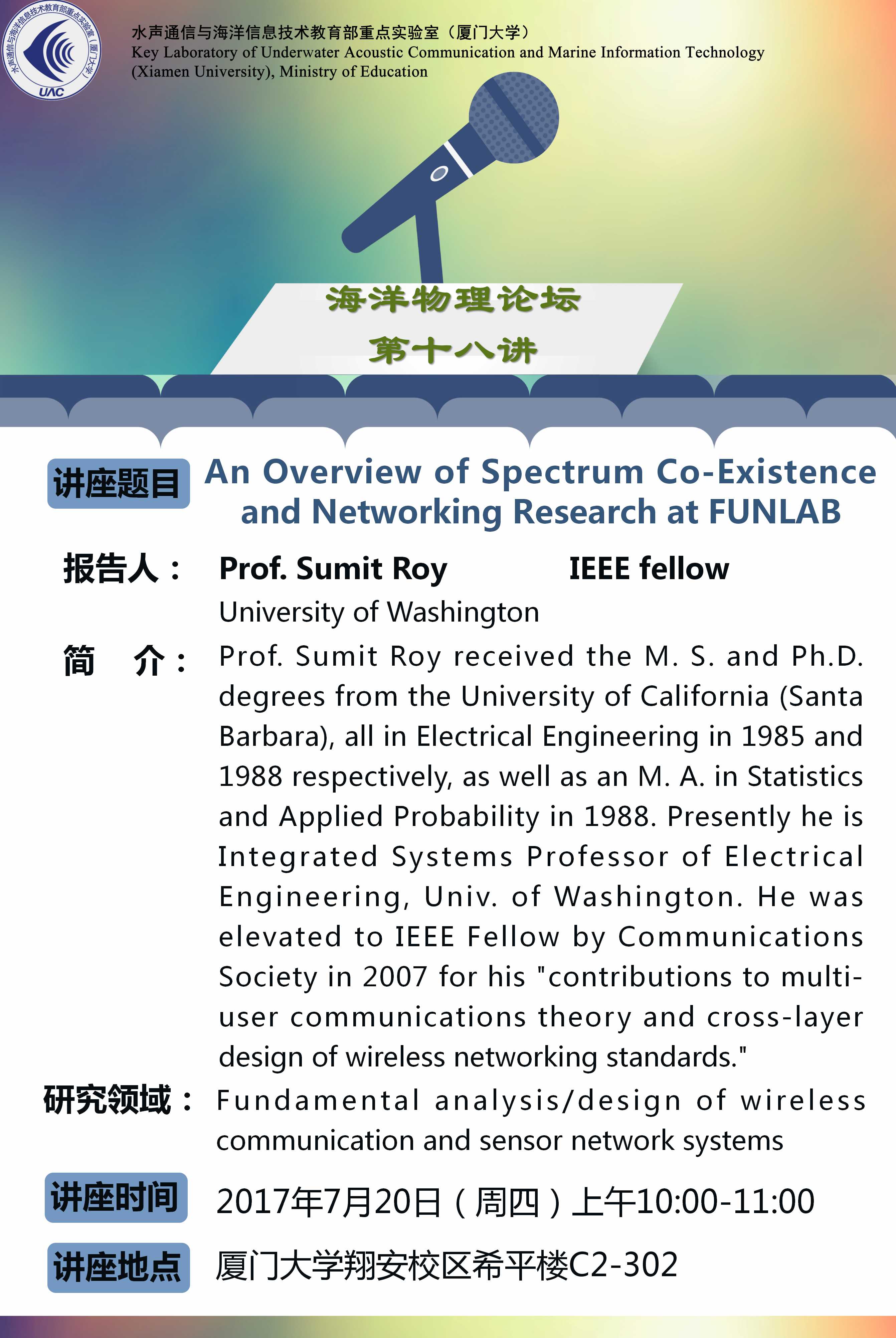 【报告题目】:An Overview of Spectrum Co-Existence and Networking Research at FUNLAB |