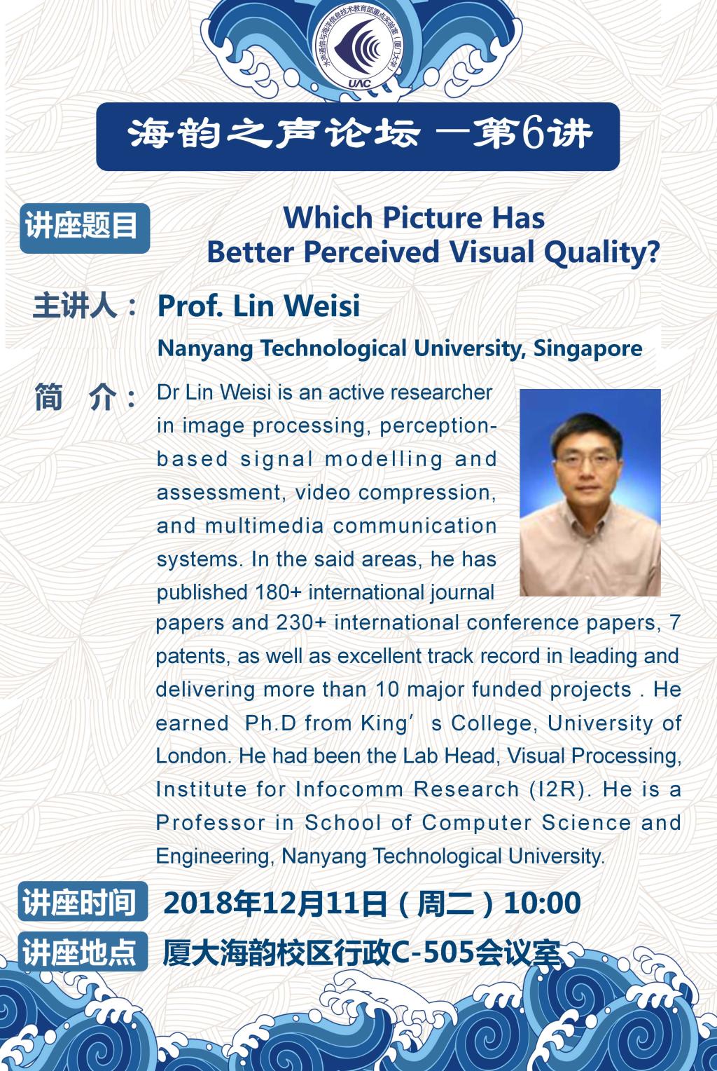 【海韵之声论坛第六讲】新加坡南洋理工大学Lin Weisi教授讲座