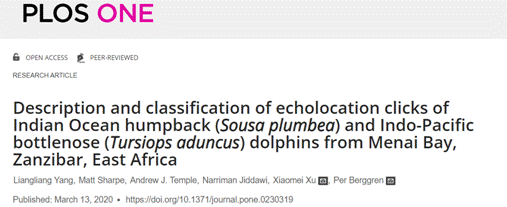 plumbea) and Indo-Pacific bottlenose (Tursiops aduncus) dolphins from Menai Bay, Zanzibar, East Africa”的研究论文。文章对生活在东非同一海域的两种海豚的回声定位信号进行了定量描述和分类。