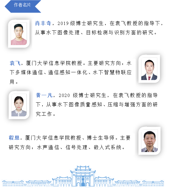 信息学院2019级博士研究生肖丰奇为论文第一作者,袁飞教授为通讯作者。该研究得到国家自然科学基金(62071401,61871336)以及厦门市海洋局海洋发展专项基金(No.21CZB015HJ10)的联合资助。